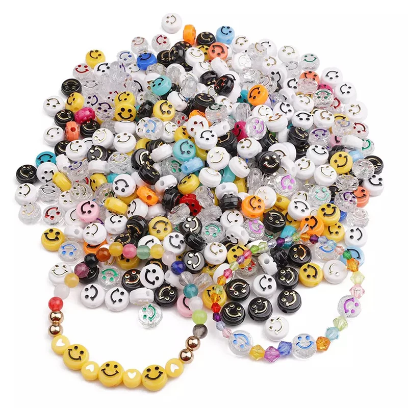 Бусины акриловые россыпью со смайликом, разноцветные бусины для бра...