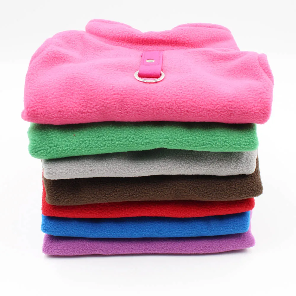 Теплый жилет для собак, мягкая флисовая одежда для маленьких собак, одежда для щенков, костюмы чихуахуа, французского бульдога, футболка с поводком и кольцом