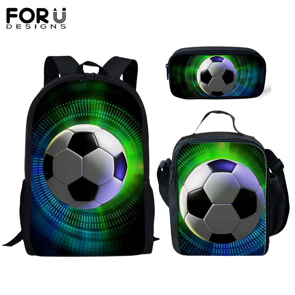 Забавный футбольный мяч FORUDESIGNS с 3D принтом, модный школьный рюкзак с чехлом-карандашом, комплект из 3 предметов для подростков, детей, мальчиков, повседневный рюкзак