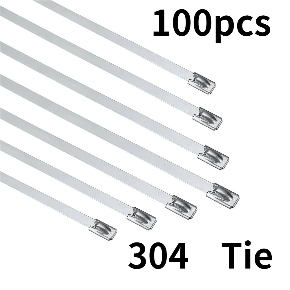100 шт. 304 # Нержавеющаясталь кабельные стяжки 4,6 мм Heavy Duty самоблокирующаяся застежка-молния кабеля галстуком-бабочкой многоцелевой металлический вытяжной Обёрточная бумага блокировки Галстуки