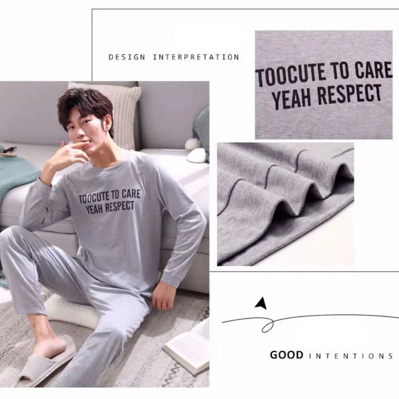 Сезон весна; Новинка; Пижамный комплект для мужчин Повседневное с длинным рукавом и o-образным вырезом, тонкие свободные пижамы для мужчин одежда для сна; Пижама с принтом; Костюм домашняя одежда