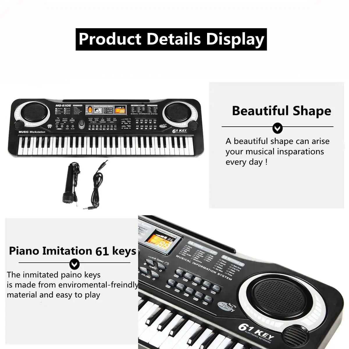 Профессиональное детское электронное пианино с 61 клавишами, цифровые музыкальные инструменты, игрушки, электрическое пианино, подарок для детей с микрофоном