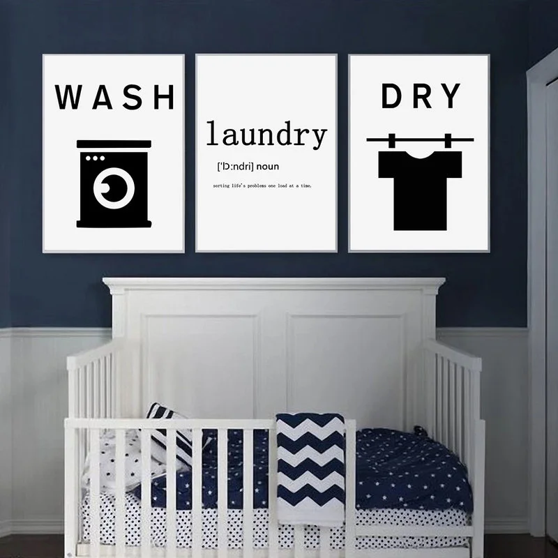 Абстрактная картина для стирки, декоративный плакат для ванной, чер...