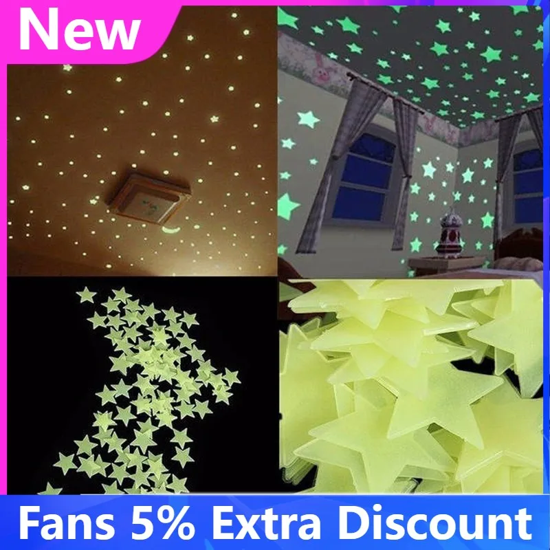 100 шт. 3D светящиеся наклейки в форме звезды, флуоресцентные насте...