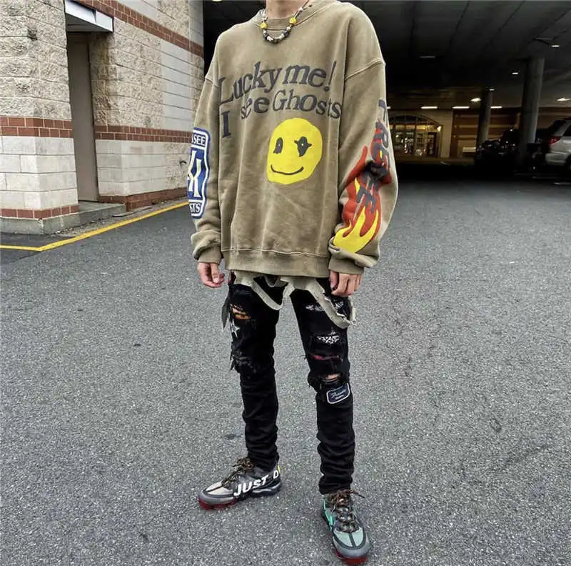 Детские свитшоты с изображением призраков для мужчин и женщин Кардашьян Дженнер Запад Рождественские толстовки Канье Запад Толстовка Высокого Качества CPFM XYZ Азиатский размер
