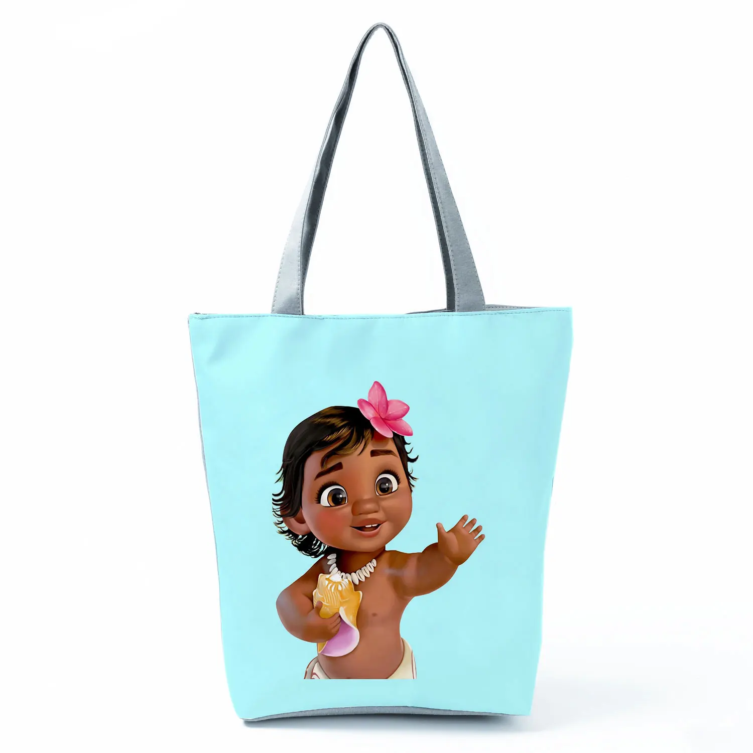 Моана печать сумка мультфильм черный человек женская сумка на плечо Высокая емкость эко многоразовая сумка для покупок синяя модная пляжная сумка