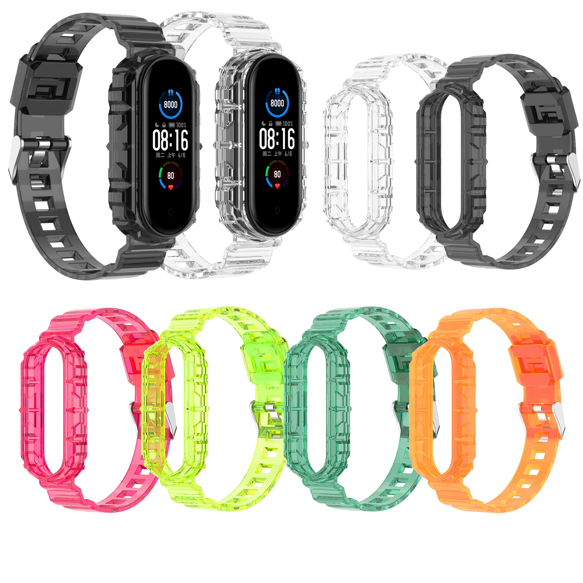 Ремешок силиконовый для Xiaomi Miband 6 5 4 3, прозрачный браслет с полной защитой для mi Band 6 5 4 3