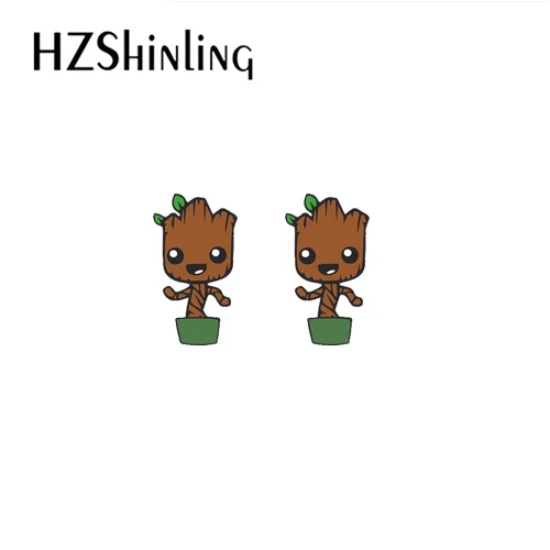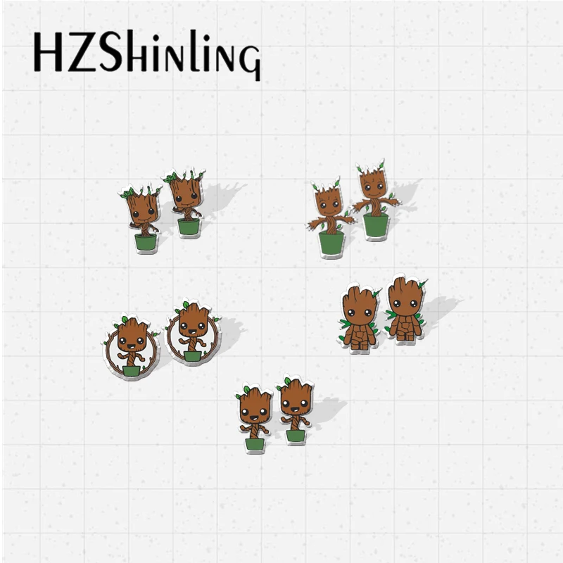 2021 Новое поступление, милые растения Грут в цветочном горшке, эпоксидная смола, ручная работа, ювелирные изделия, акриловые серьги-гвоздики
