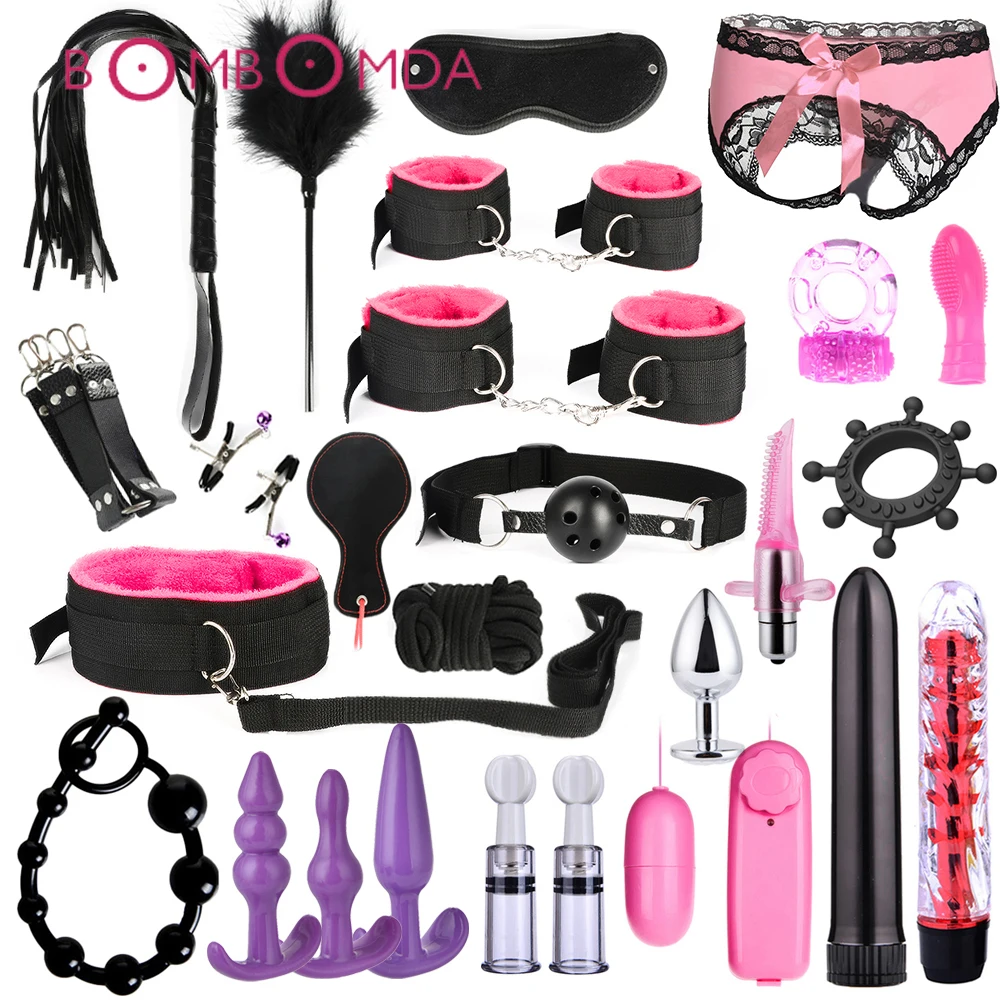 Набор для связывания взрослых, интимные игрушки для женщин, мужские наручники, зажимы для сосков, плетка для шлепков, секс металлическая Анальная пробка, вибратор, БДСМ, наборы