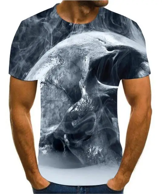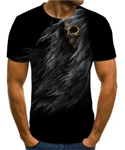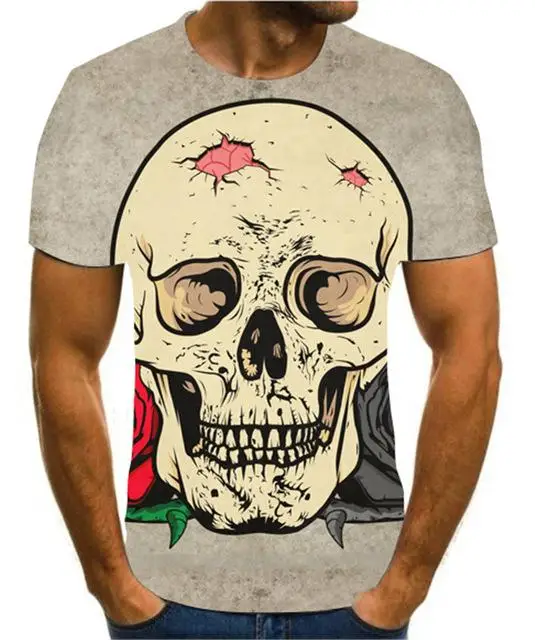 Футболка мужская с 3D-принтом черепа, топ в стиле панк-рок, короткий рукав, круглый вырез, хип-хоп, летняя одежда, 2020
