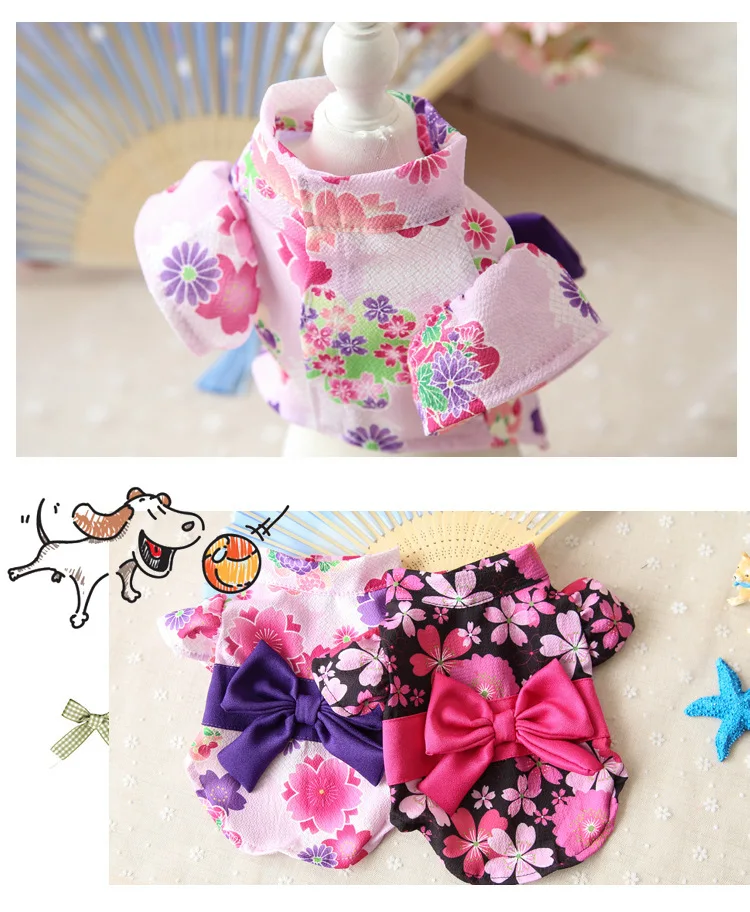 Одежда для собак, рубашка Сакура, одежда для собак, мягкое кимоно с японским мультяшным принтом Мару-хризантемы, одежда для девочек и мальчиков на весну и лето