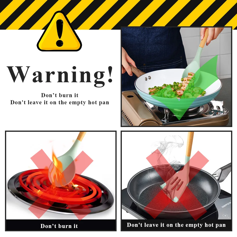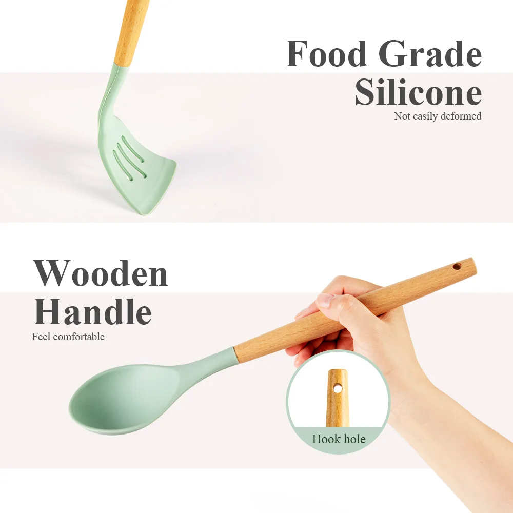 Набор силиконовых кухонных принадлежностей, антипригарная посуда, деревянная ручка, Легкая очистка, венчик, лопатка, ложка, Набор принадлежностей для приготовления супа