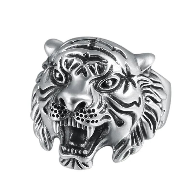 Мужское кольцо из титановой стали с головой тигра в стиле ретро