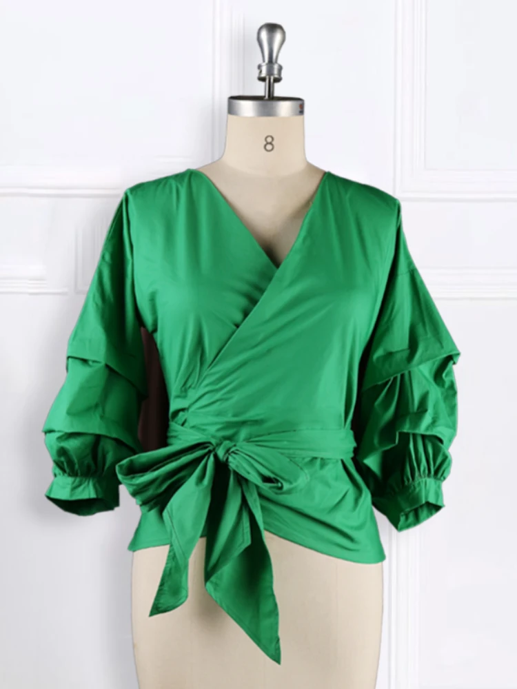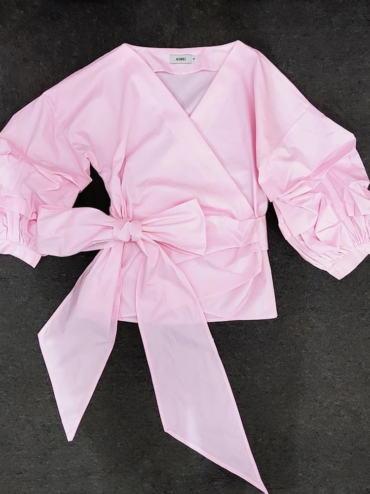 Женская хлопковая блузка с запахом, Повседневная рубашка большого размера с поясом и длинным рукавом, весна-осень 2022