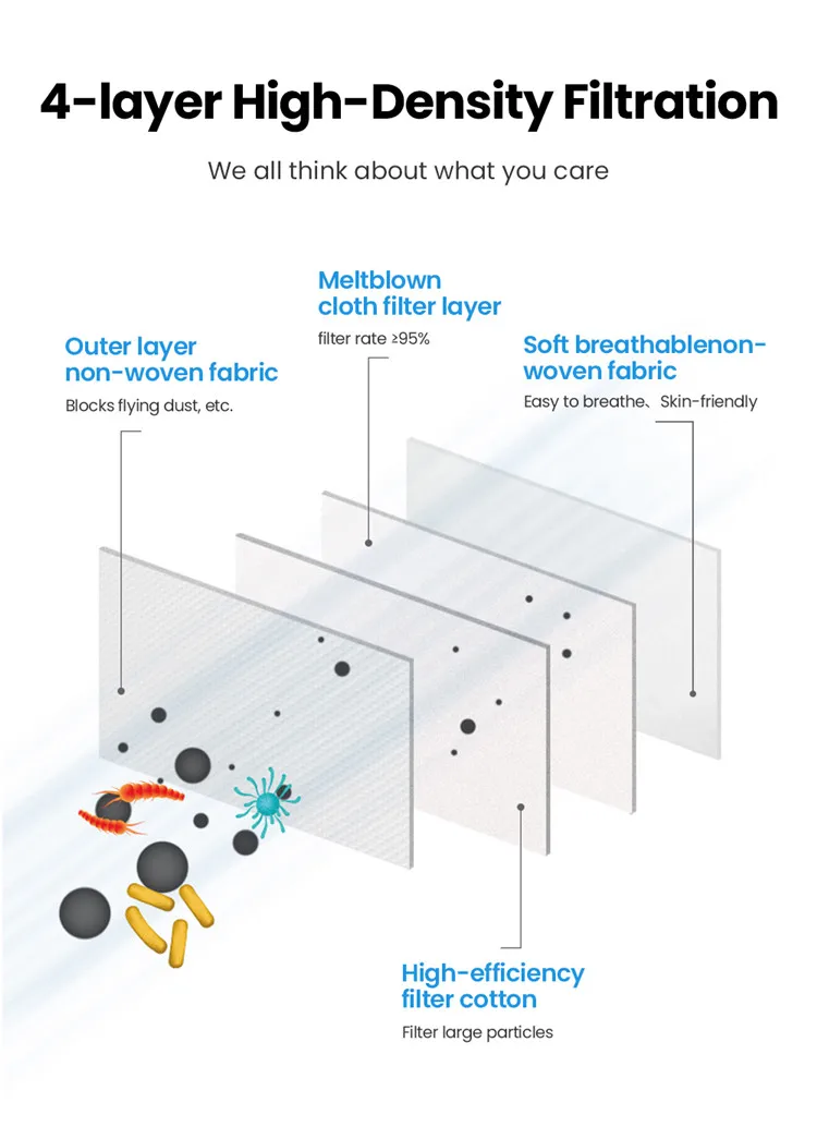 Материал: Нетканая ткань, растворимый спрей KN95, Теплоизоляционный хлопокТип: многоразовыйСпособ ношения: Ушная петляСкладывается: складываетсяДыхательный клапан: нетСлой: 4 слоя sЦвет: белый/черный/розовый/синий/зеленый/фиолетовый/арбузный красныйВозрастная группа: взрослые, мужчины, женщины и мужчиныУпаковка: 10/50/60/70/100 штСтруктура продукта: в основном состоит из поверхности маски, фильтрующей мембраны, маски пояса и носа моста полосыОсобенности продукта:1. Сохраняет тепло и является водонепроницаемым2. Мягкая текстура и удобная одежда3. Фильтрация PM 2,5 с коэффициентом эффективности до 95%