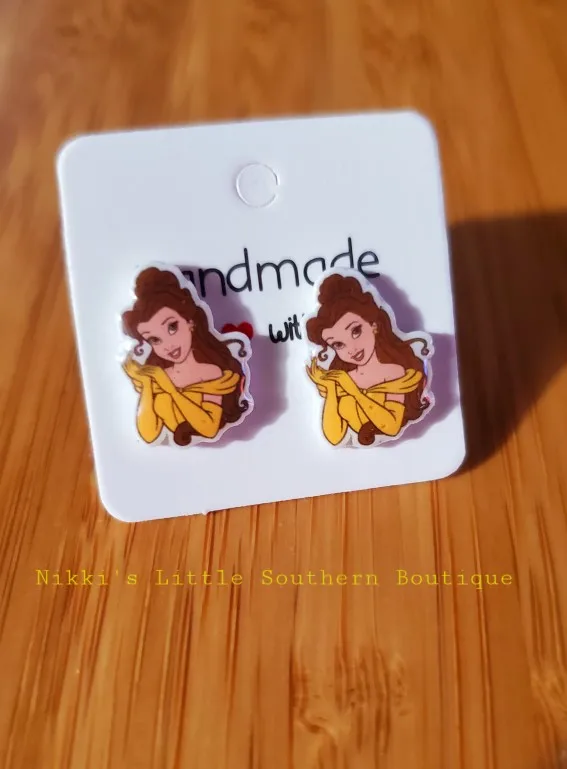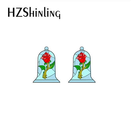 Новинка 2021 г., колокольчик Красавица и чудовище, принцесса и принц розы, эпоксидные украшения ручной работы, Милые акриловые серьги-гвоздики
