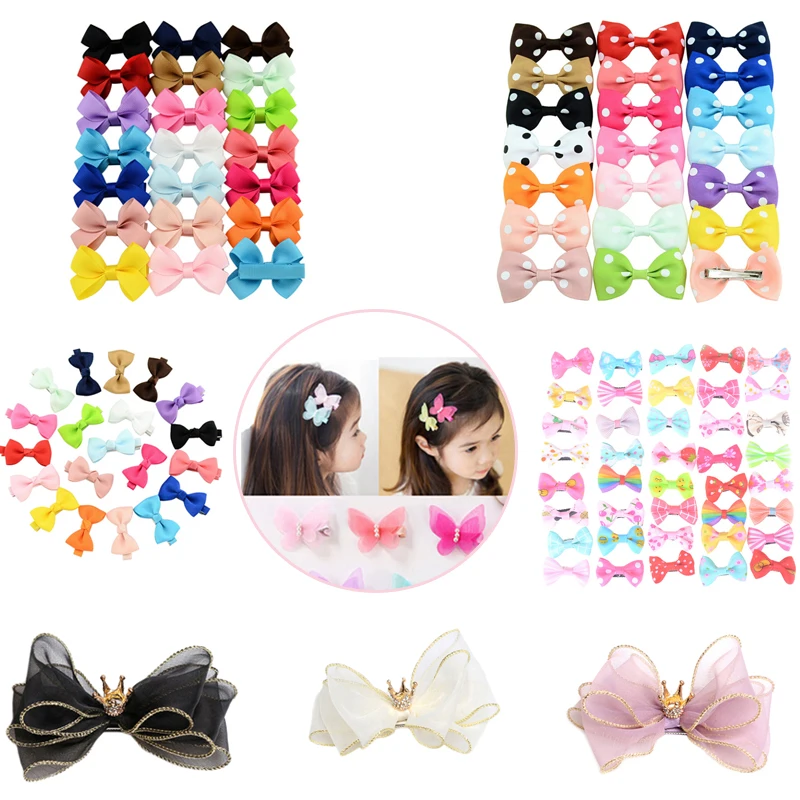 Заколка для волос для девочек, 20 шт.лот, разноцветная, с бантом