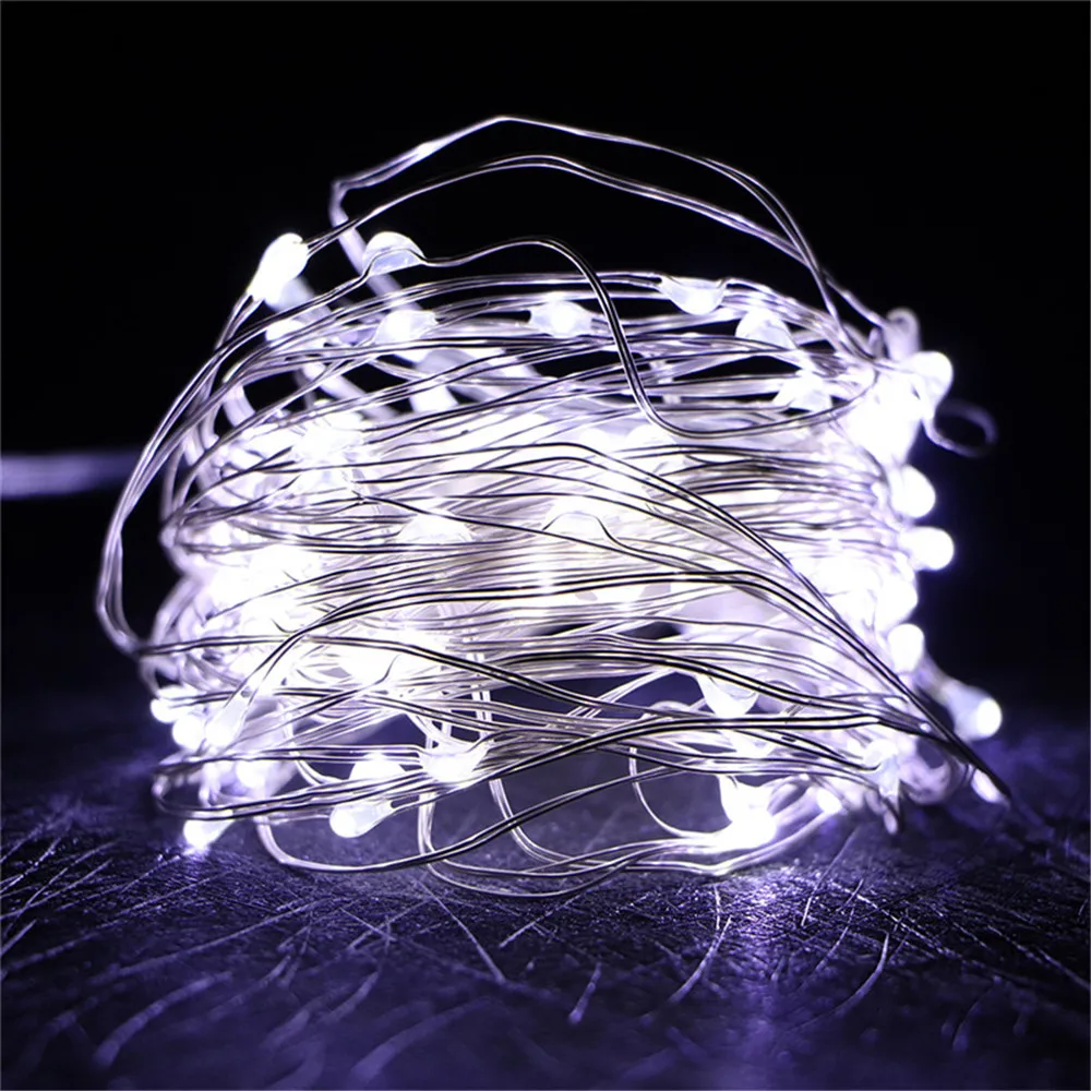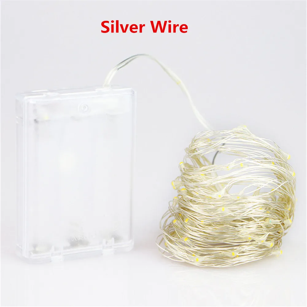 2 м 5 м 10 м Фея прокладки СИД светильник Водонепроницаемый Серебряный медный провод шнура Новогоднее украшение для свадьбы светильник s сад Батарея работает