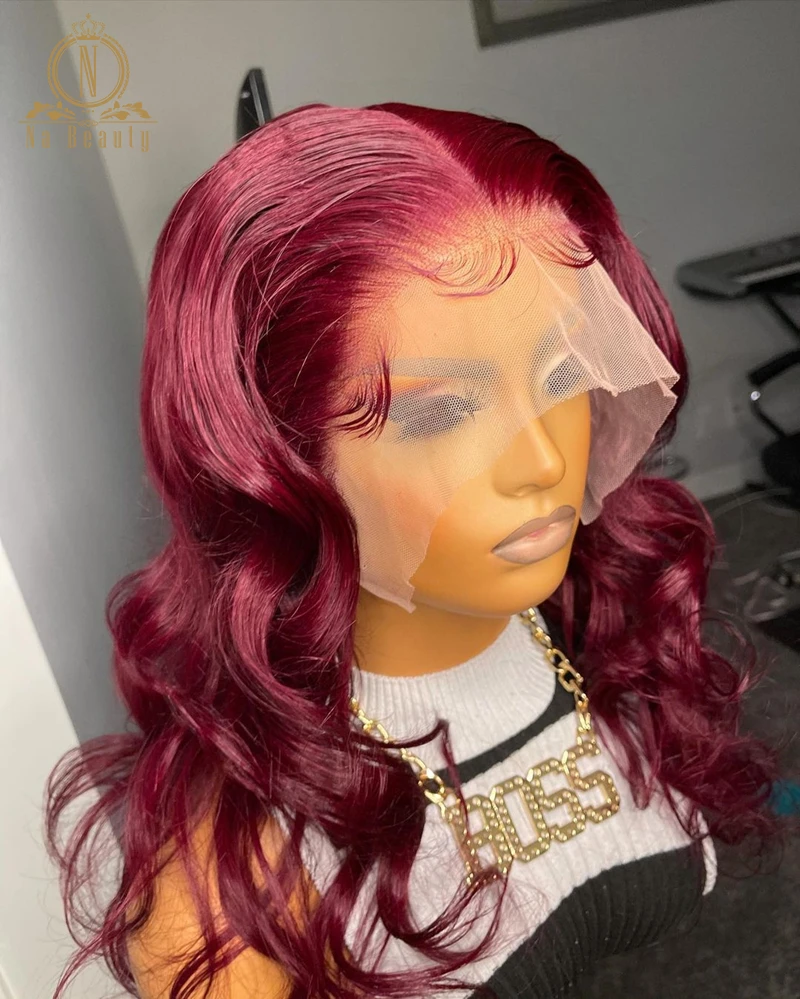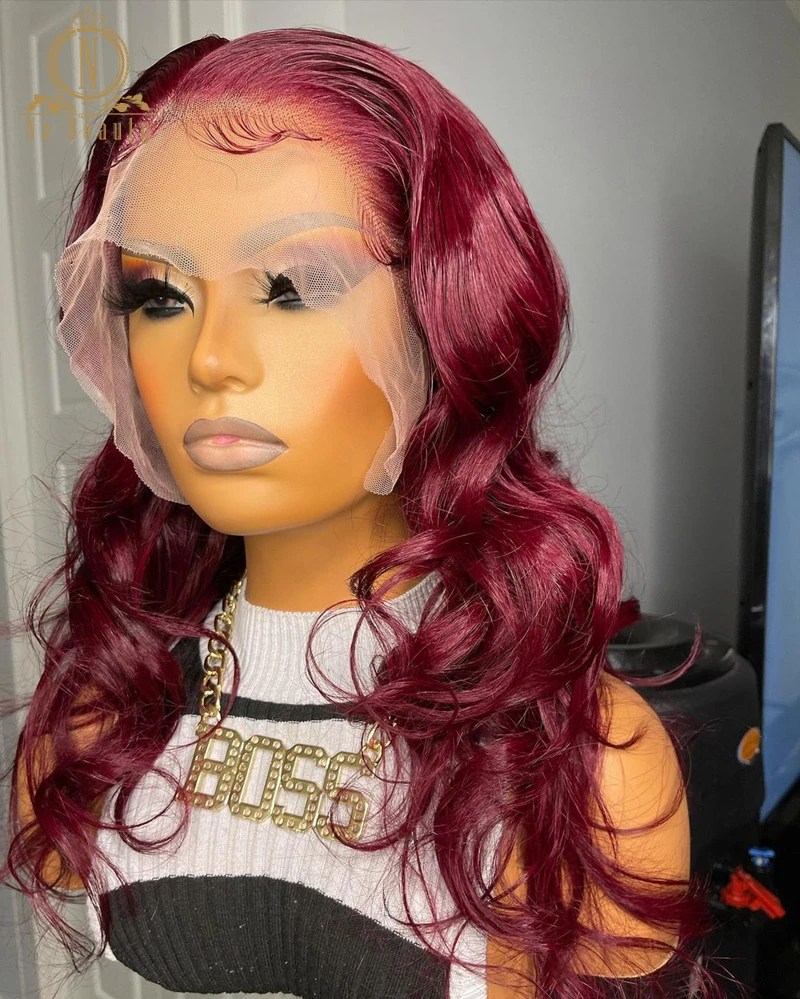 Бордовый цвет 99J T кружевной парик объемная волна предварительно выщипанные 13X4 человеческие волосы на шнурке парики для чернокожих женщин Nabeauty