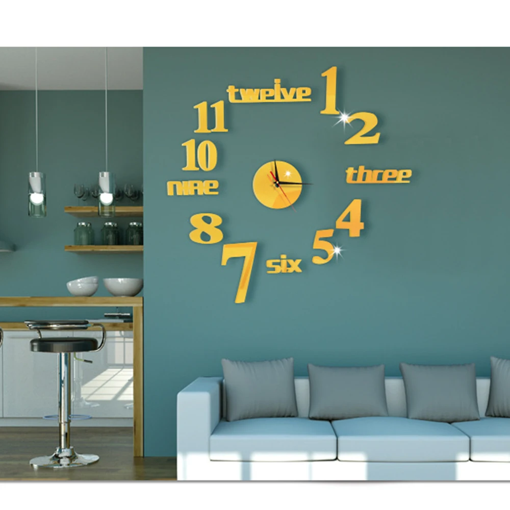 3D большие акриловые настенные часы с зеркальным эффектом, простой дизайн, настенные художественные украшения, кварцевые современные большие часы, стрелочные настенные часы