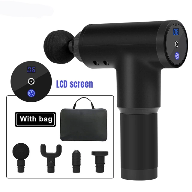 1 x массажный пистолет с ЖК-дисплеем4 массажных головки1 зарядное устройство1 сумка с подарочной ручкойРуководство пользователя на английском языке-1 шт.