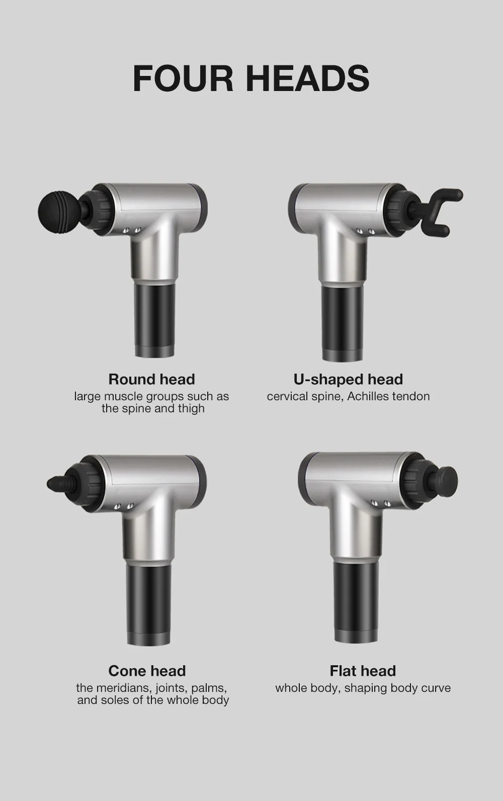 1. Включает 4 различных массажных головки, удовлетворяющие различные требования.2. Эффективно уменьшает мышечную жесткость и боль, увеличивая кровообращение.3. 30 скоростей регулировки, вы можете выбрать, что вам подходит.4. Литиевая батарея большой емкости 2400 мАч, 2 часа в сутки.5. Чтобы предотвратить неправильное касание и включить массажный пистолет, нажмите и удерживайте в течение 5 секунд, чтобы включить его.6. С повышенной защитой, защитой от перегрева и другими защитными устройствами, безопасными для использования.7. Подходит для восстановления после спортивной усталости, реабилитации после спортивной травмы, облегчения боли во время периода конвалесценции хирургии, а также уменьшения воспалительной реакции.
