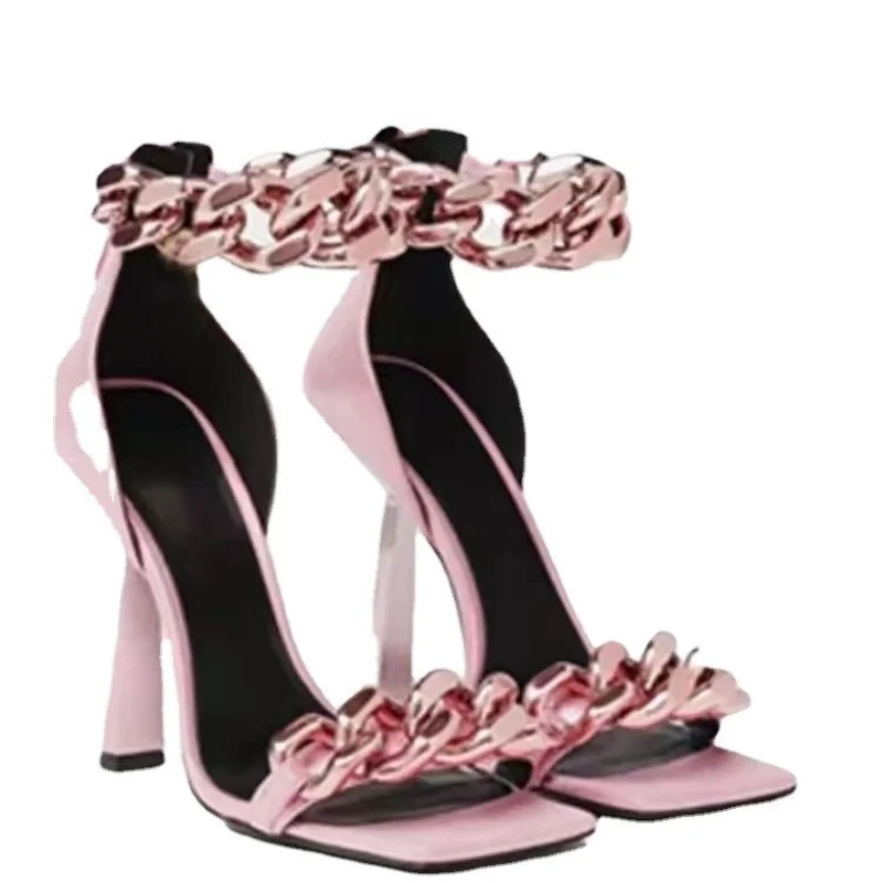 Женские босоножки на шпильке, сандалии с квадратным носком, на цепочке, большие размеры 36-43, лето 2021