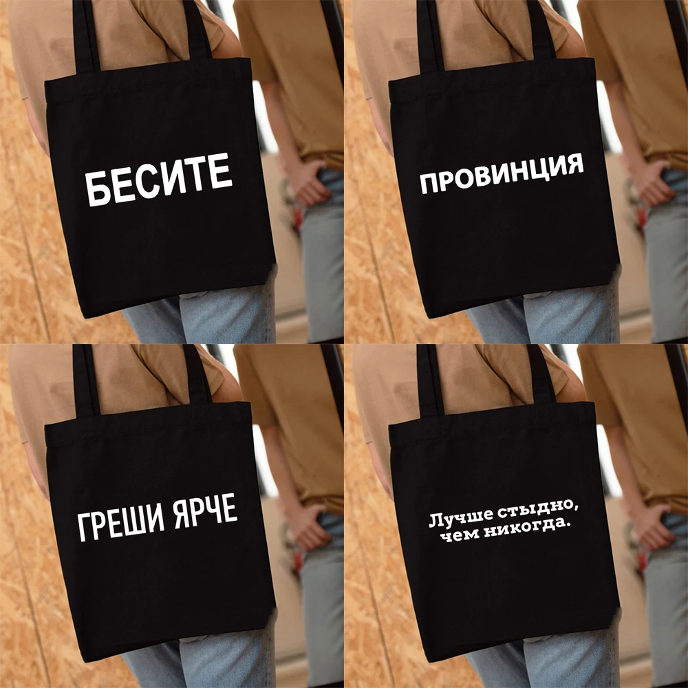 Сумка на плечо с надписью на русском языке, Женская многоразовая сумка для покупок, модный Органайзер в стиле Харадзюку, сумки-тоут, Экологичная дорожная сумка-тоут