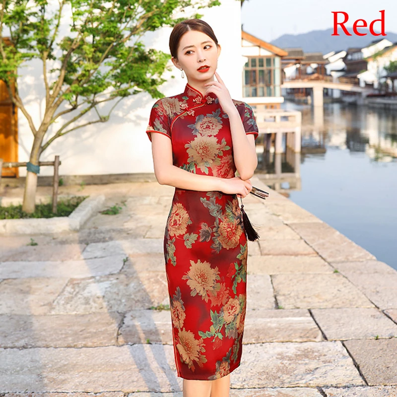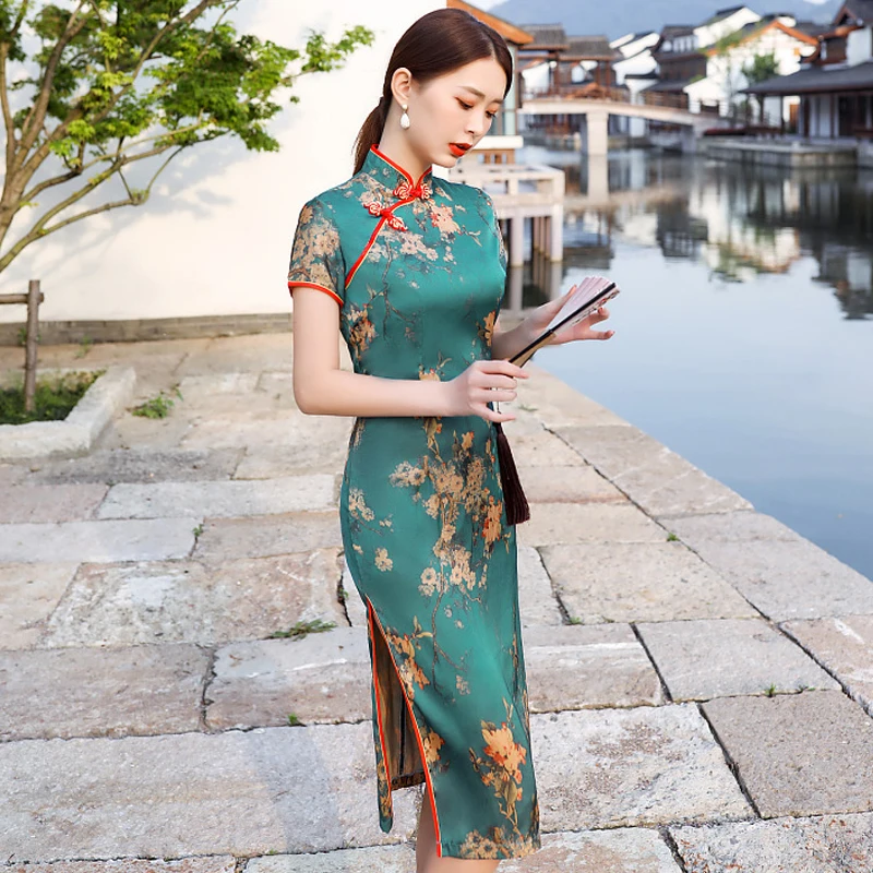 Женское китайское платье с разноцветным цветочным принтом и пуговицами ручной работы Qipao Cheongsam размера плюс 4Xl Vestido китайская летняя одежда 2021