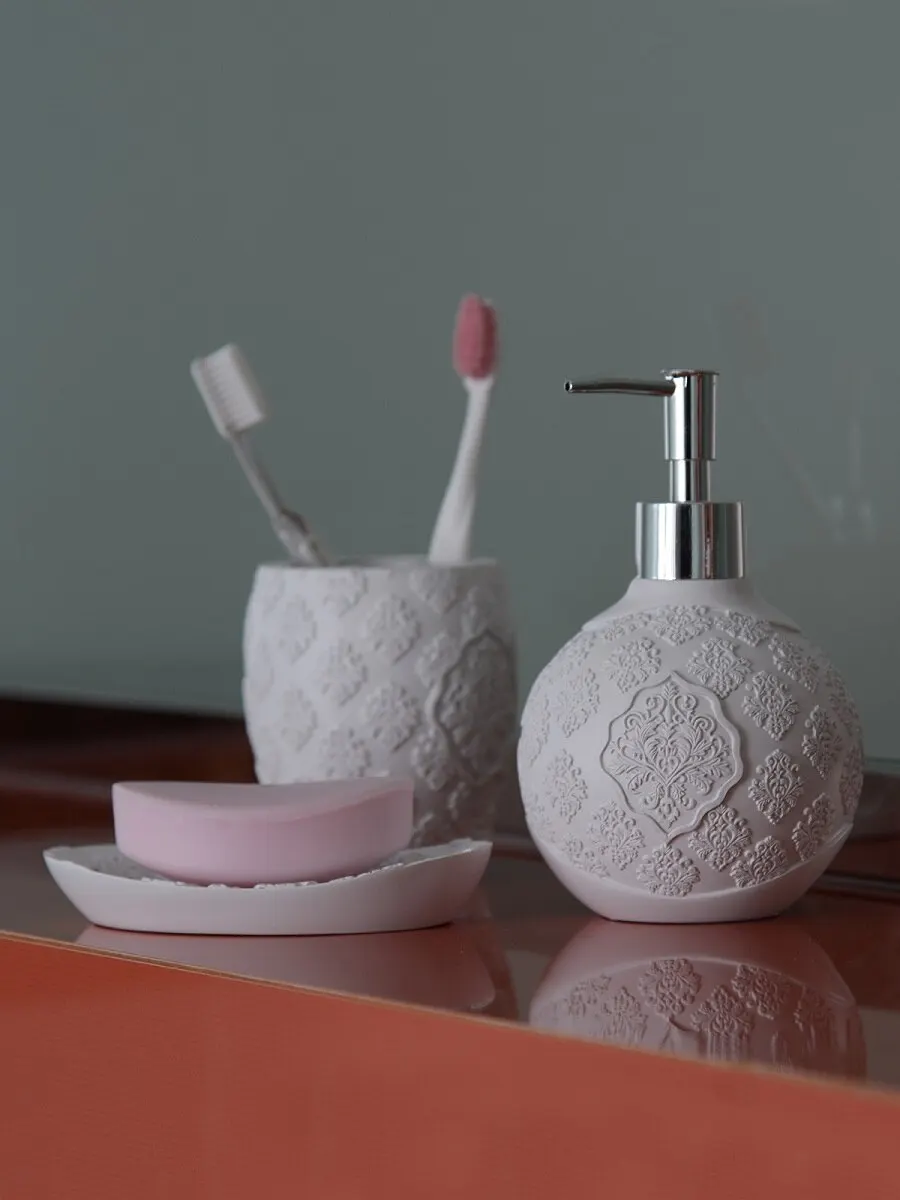 Аксессуары коллекции «Ажур» незаменимыми элементами вашей ванной комнаты. Цветовое решение и текстура заставит вас влюбиться с первого прикосновения и визуального знакомства. Высокопрочный материал полирезина, сохранить первозданный вид даже при самой длительной эксплуатации. Ершик для унитаза состоит из пластиковой хромированной ручки и сменной насадки, обладающей стойкостью к истиранию. Удобный дозатор для порционной подачи мыла, шампуней и других моющих средств можно использовать для ванной комнаты, так и как дозатор для кухни. Мыльницы для ванной - обязательный атрибут любого санузла, предназначенный для удобного хранения и ежедневного использования мыла. Стакан и подставка для зубных щеток являются не просто оригинальным дополнением для ванной комнаты,