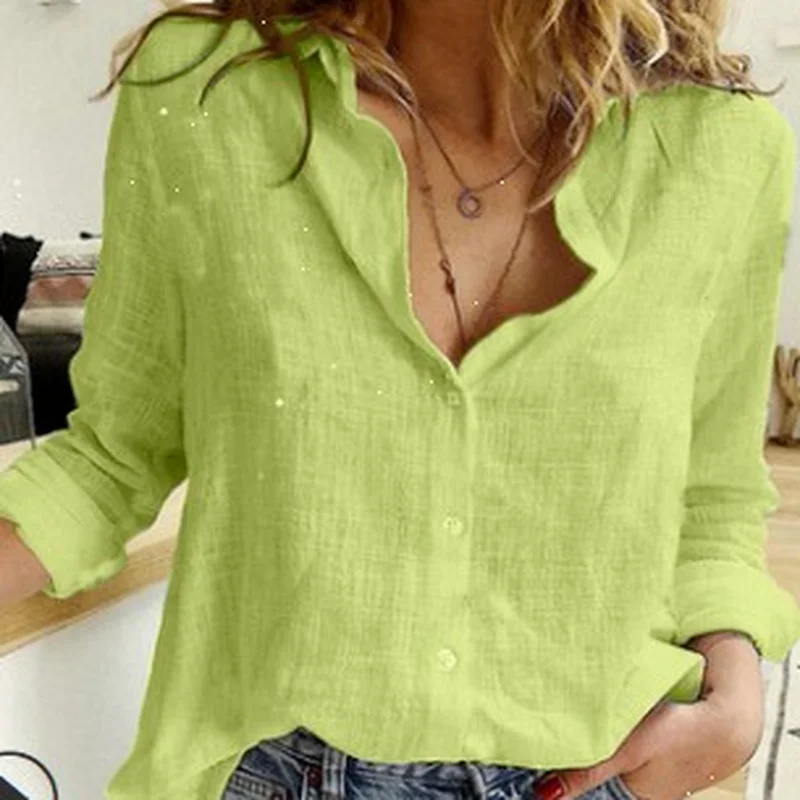 Рубашка женская с отложным воротником, Повседневная Свободная блузка из хлопка и льна, сорочка оверсайз с длинным рукавом, белая Рабочая одежда