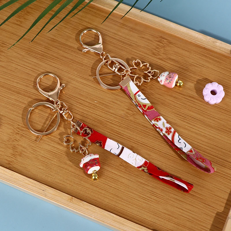 1 шт. симпатичные керамические Брелоки для ключей Neko счастливый кавайный Кот удача Кот брелок Сакура Автомобильная сумка Подвеска Мобильные аксессуары для женщин