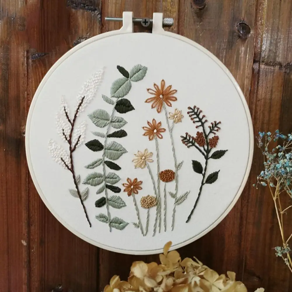 Набор для самостоятельной вышивки с растительным цветочным узором, Бамбуковая вышивка, обруч с цветными нитями, Набор для вышивки крестиком D50