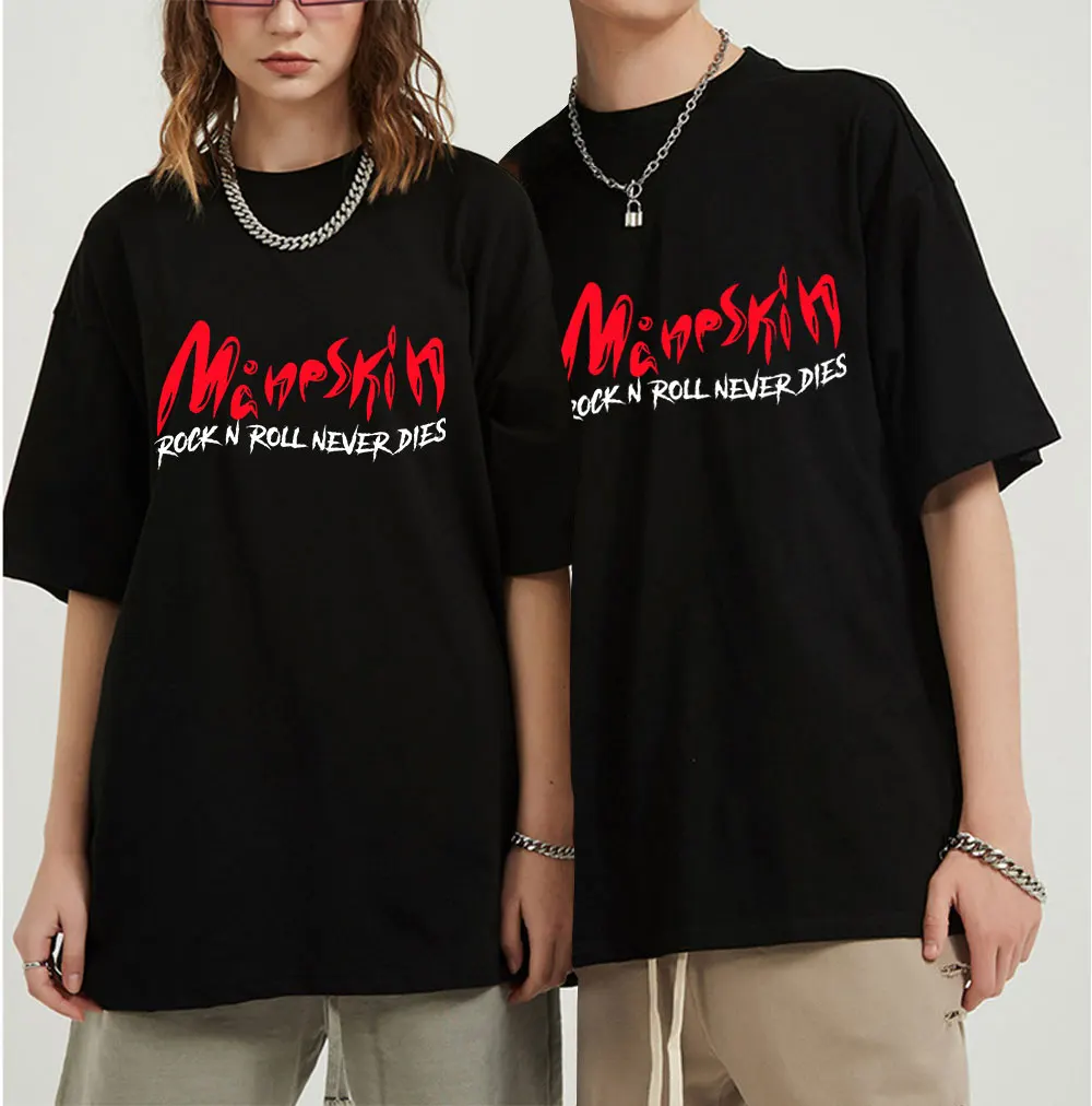Футболка с принтом логотипа Maneskin для мужчин и женщин, модная рубашка с итальянской группой, с коротким рукавом, Повседневная Уличная одежда, на лето