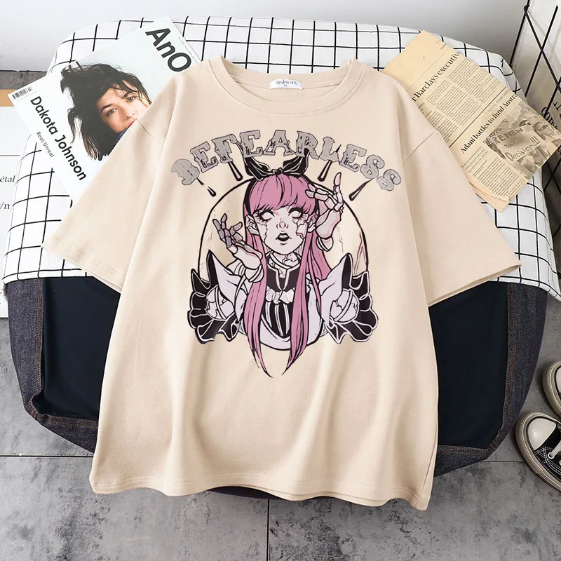 Женская футболка в стиле Харадзюку, свободная Готическая футболка в стиле панк, Харадзюку, уличная одежда, y2k, на лето