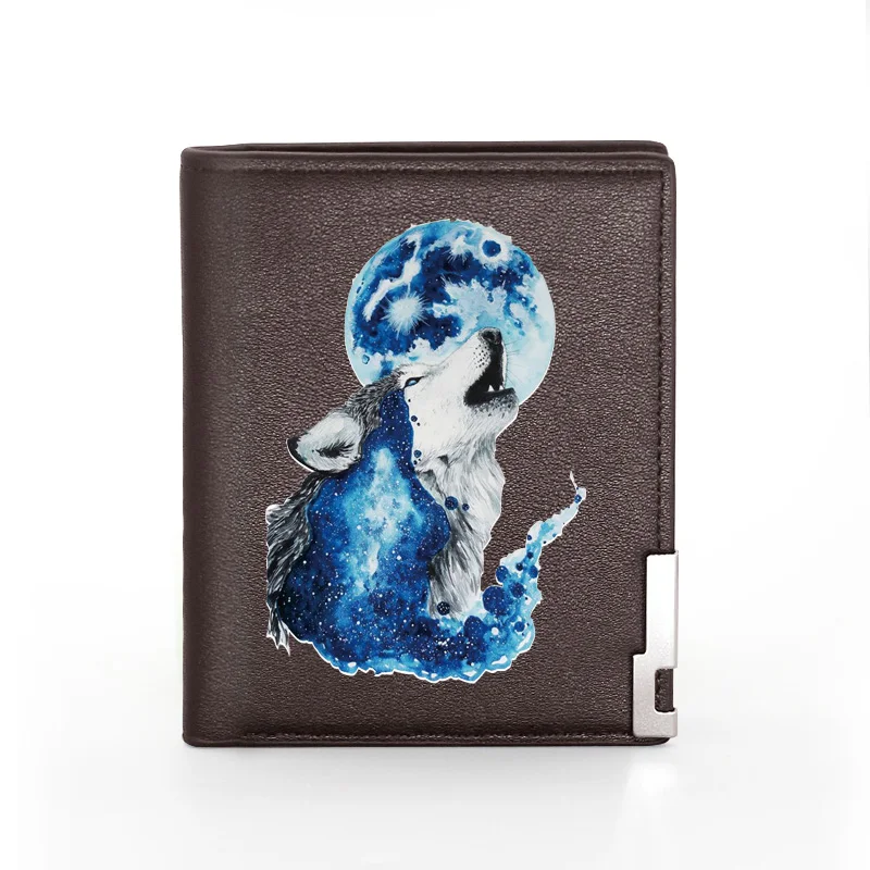 Мужские кошельки из искусственной кожи, мужские кошельки для кредитных карт, дизайнерский коричневый кошелек с таинственным классическим волком, кошельки высокого качества
