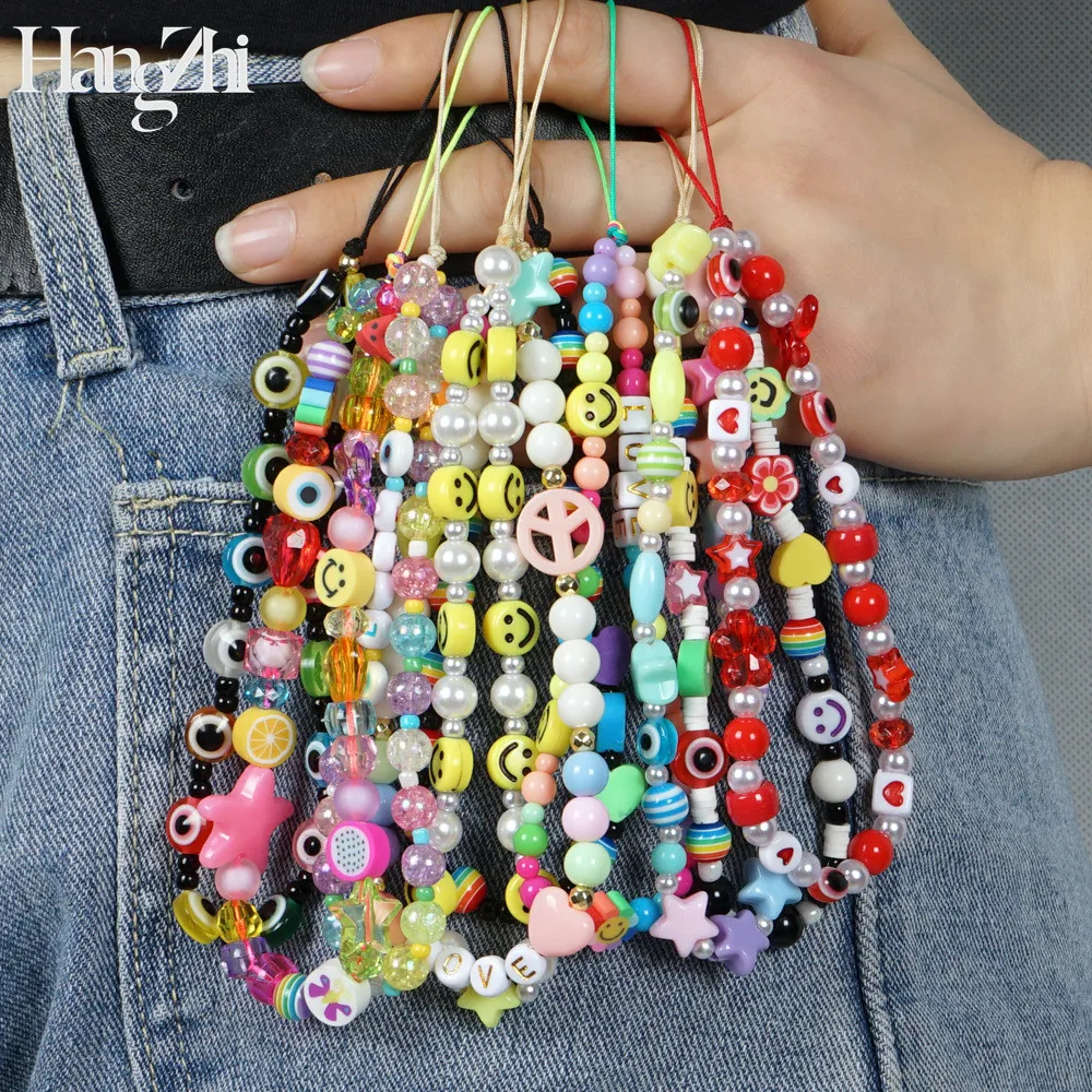 Ремешок для сотового телефона HANGZHI мобильный телефон, летняя бижутерия, с цветными акриловыми бусинами и улыбкой, 2021