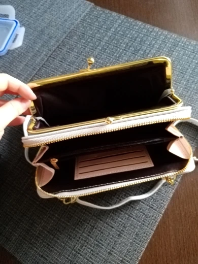 Очень хорошая, маленькая сумочка, и довольно вместительная, можно положить ключи, телефон, деньги и карточки. Единственное мне не очень понравился металл золотого цвета, красивее был бы серебрянный.