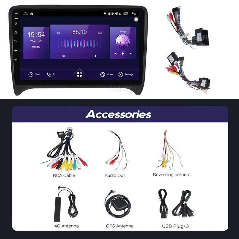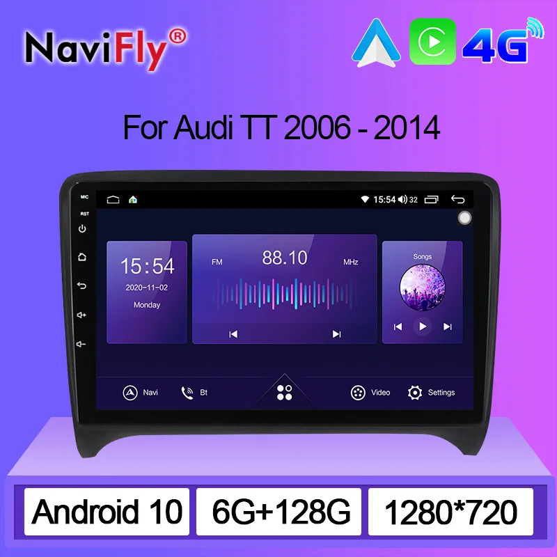 Автомагнитола NaviFly, для Audi TT MK2 8J 2006-2012, Android 10, 6G, 128G, 1280*720, IPS, RDS, Carplay