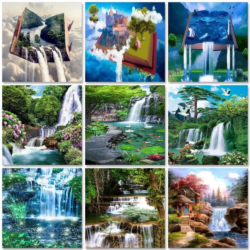 PhotoCutom масло Краски по номерам Наборы водопад 60x75cm Краски in...