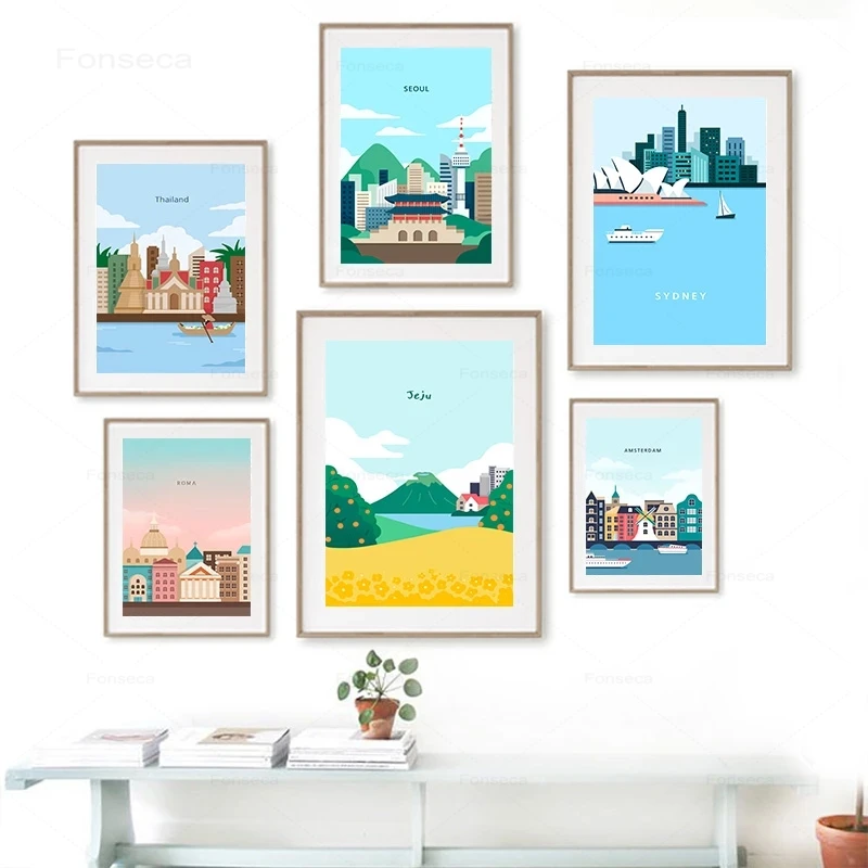 Пейзаж путешествия город аниме постер Марокко Нью-Йорк Париж Пейзаж Холст Живопись Печать настенное искусство картины для домашнего интерьера Декор
