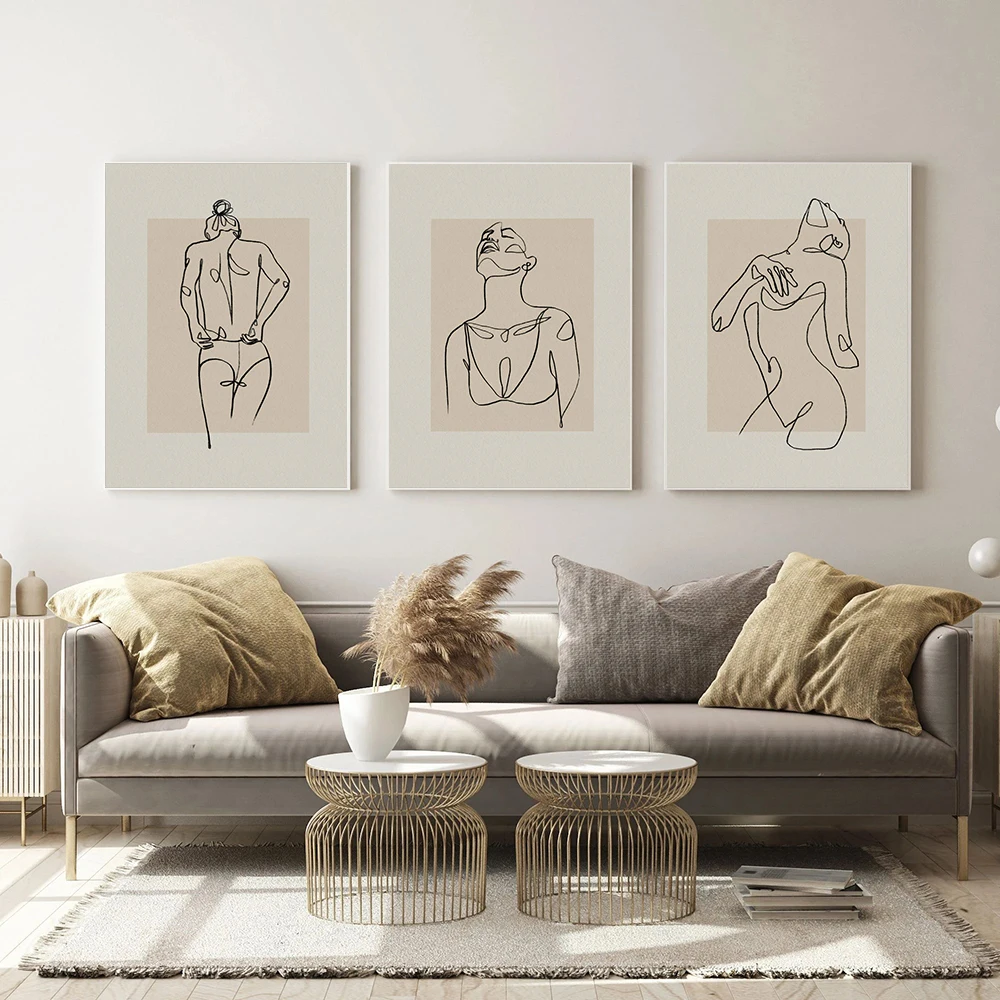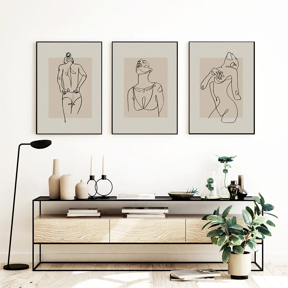 Абстрактная линия Женская фигурка тела настенное Искусство Холст Плакаты принты Минималистичная женщина тонкая обнаженная живопись Современная Настенная картина Декор