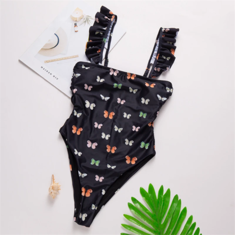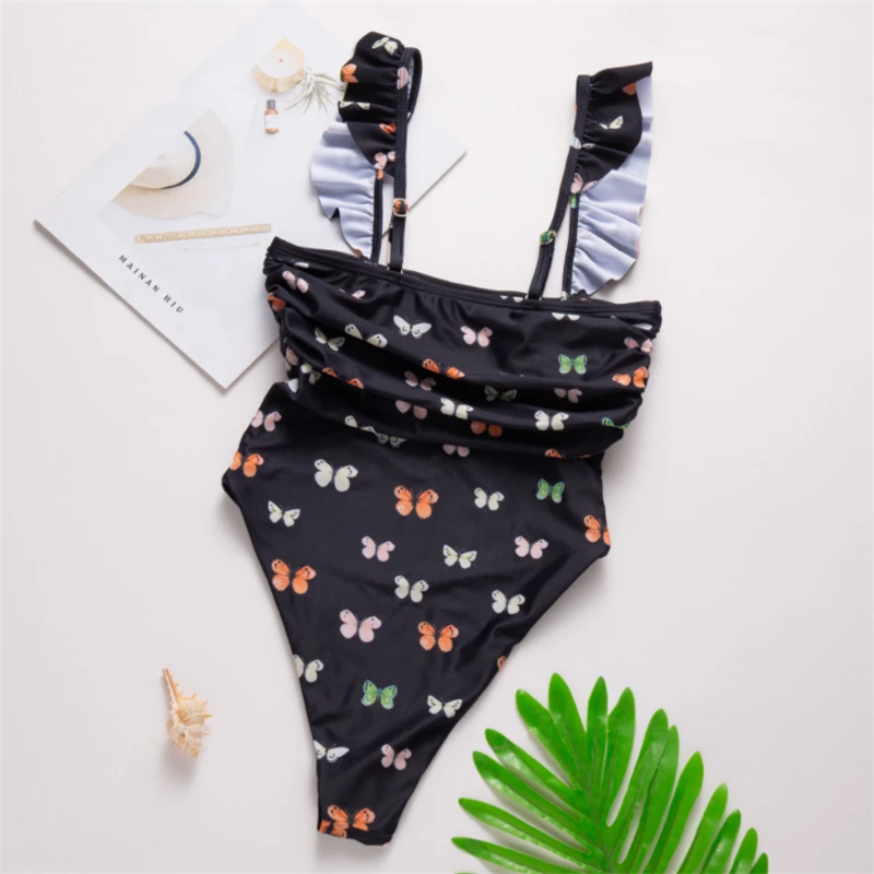 Купальник-бикини GNIM с оборками, женский купальный костюм с принтом бабочки, Женский цельный бразильский купальник пуш-ап с высокой талией, комплект бикини