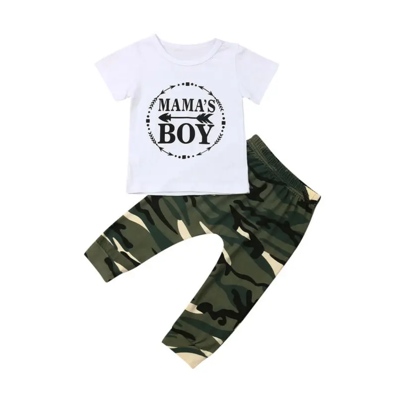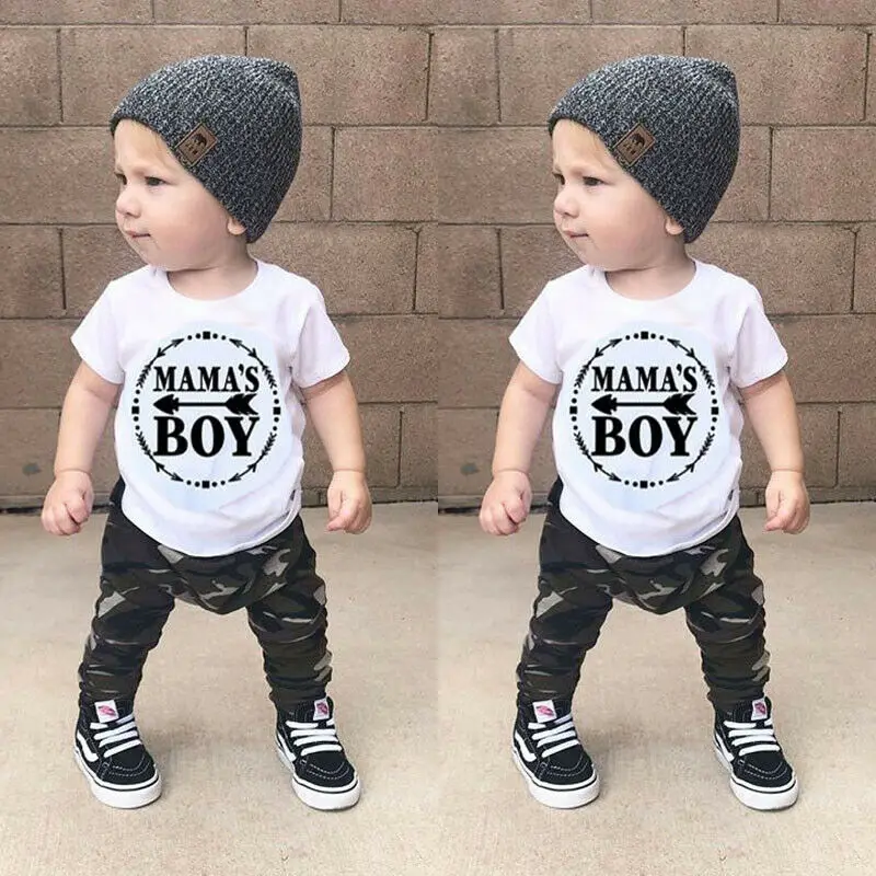 Одежда для новорожденных, для маленьких мальчиков, летние топы, футболка с камуфляжным принтом комплекты одежды из топа и штанов, спортивный костюм