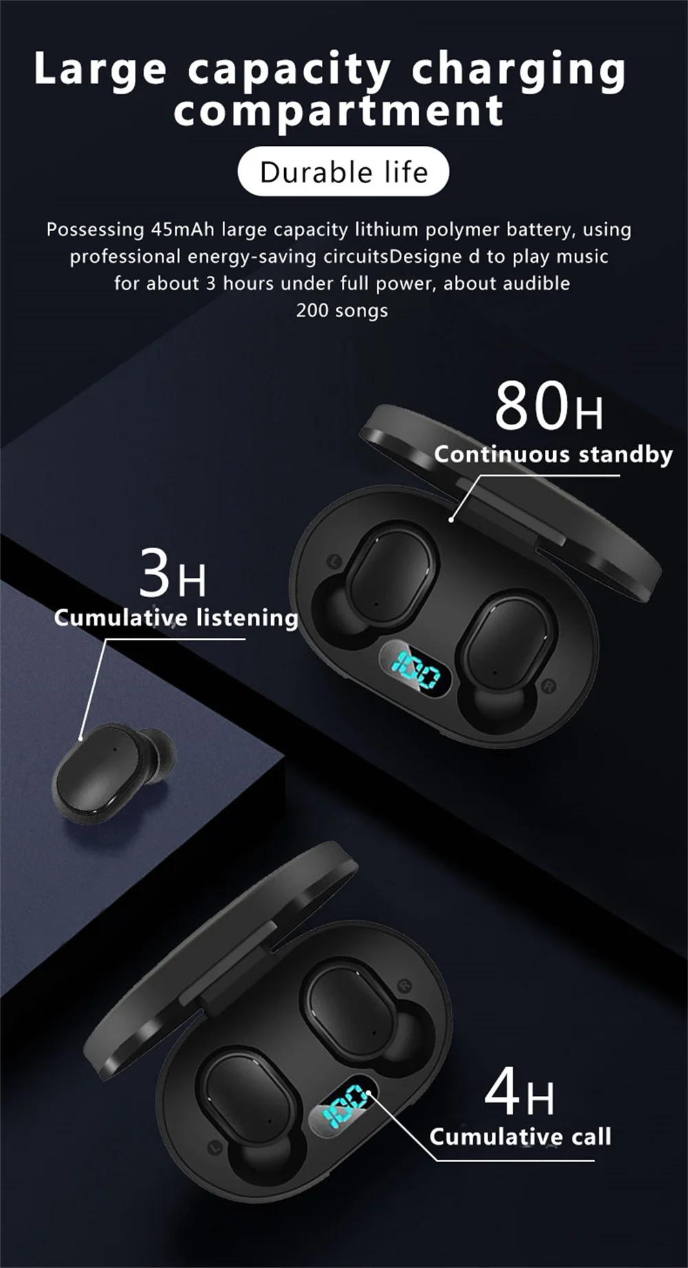 Will automatically pair, power on after taking out from the 280mAh charging box.