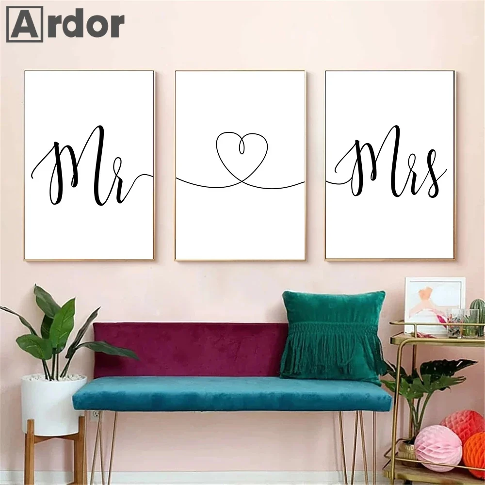 Черно-белая картина с надписью Love на холсте Mr Mrs, постер с цитатами и принтом, настенные картины, Современное украшение для гостиной и дома