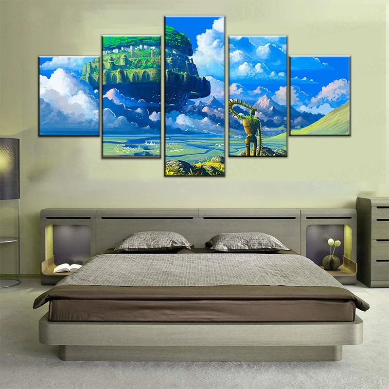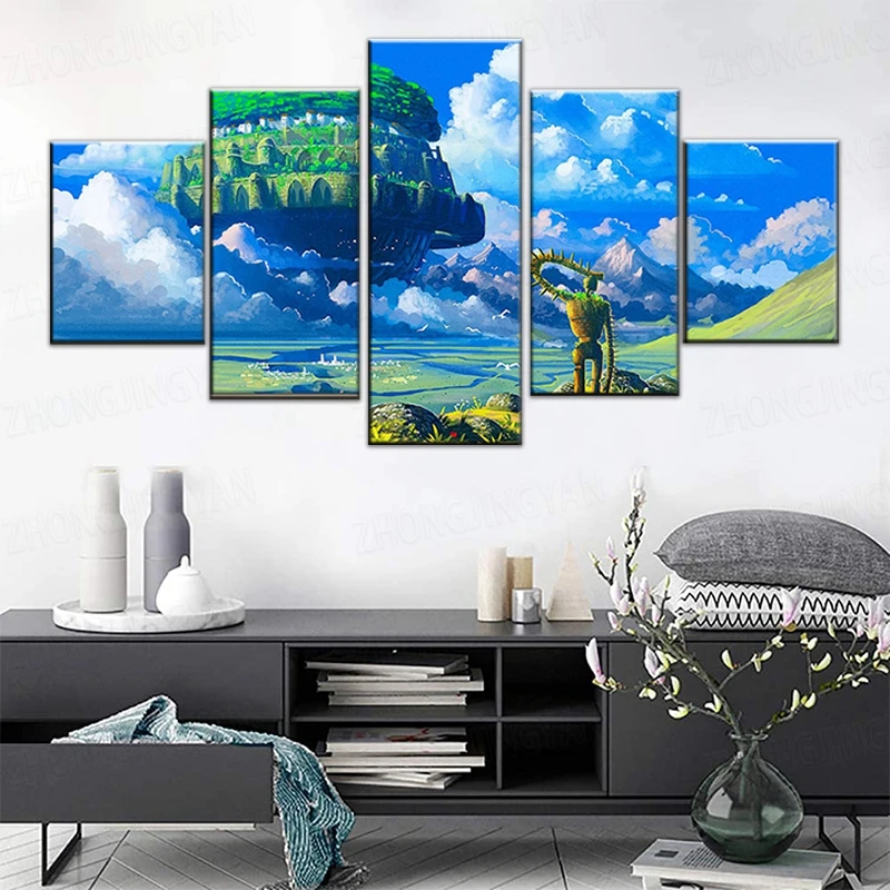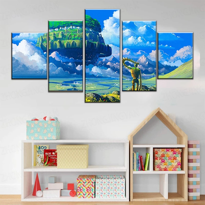 Модульные фотографии, 5 панелей, Miyazaki Hayao Laputa, замок в фотографиях, Постер и печать на холсте