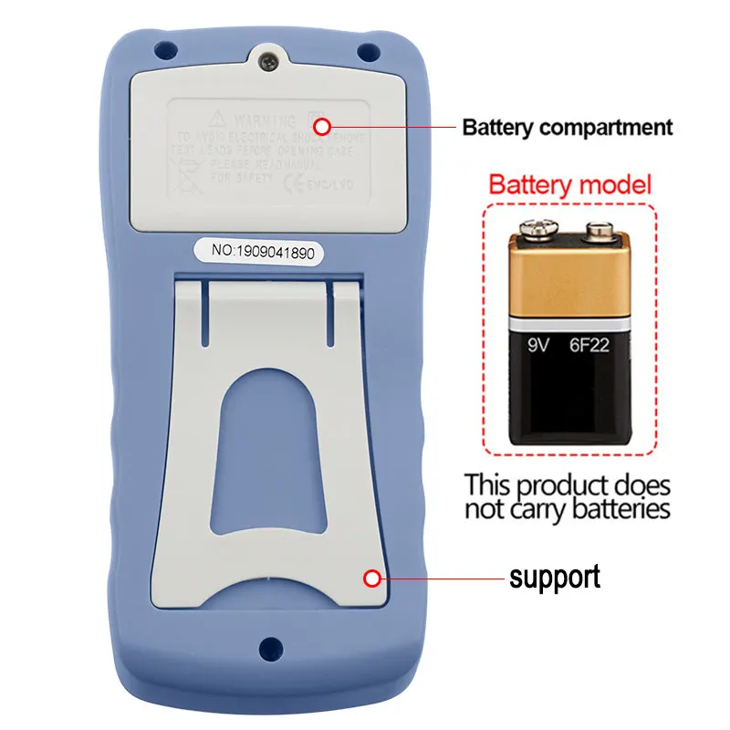 Цифровой мультиметр измеряет напряжение тестер с ЖК-дисплеемDCV: 200m-2-20-200-600V ± 0.5%ACV: 200-600V ± 1,0%DCA: 2m-20m-200m-10A ± 1.8%Ом: 200-2K-20K-200K-2MΩ ± 1.0%Батарея Тесты: 1,5 VДиодный Тест: ДаНепрерывный зуммер: ДаТест транзистора: ДаХранение данных: ДаЗадний светильник: ДаМощность: аккумулятор 9 В (без аккумулятора)Размер: 140x70x35 ммПосылка:1 * Цифровой мультиметр (без аккумулятора)2 * Тестовые провода1 * Руководство пользователя 1. Использование: точно измеряет ток постоянного/переменного тока, напряжение, сопротивление, температуру, емкость, диод, нулевой/пожарный провод, частоту и так далее.2. Большой ЖК-Дисплей: ЖК с большими цифрами легко проверить номер.3. Фонарик: с фонариком, он может работать в различных условиях.4. Применение: Широко используется в ремонте электроприборов, ремонте бытовой техники, домашней электропроводке и т. д.5. Преимущество: идеально подходит для коммерческих настроек, где он может обрабатывать требования длительного рабочего дня, от прочного внешнего вида до широкого спектра тяжелых возможностей. Примечание: Инструкции по использованию:1. При измерении напряжения постоянного тока, постоянного тока, переменного напряжения, постоянного тока, сопротивления, диода, положения батареи, красная ручка вставляется в гнездо «VΩmA», И черная ручка вставляется в гнездо «COM».2. Когда ток постоянного тока превышает 200 мА, красная ручка вставляется в черную ручку «10ADC» и вставляется в гнездо «COM». Функциональный переключатель устанавливает диапазон отклика.3. При измерении триода HFE Вставьте трубку PNP или трубку NPN в соответствующие гнезда E, B, C и поместите функциональный переключатель в положение «HFE».Эти часы имеют полнофункциональную, точную и точную высоту, простоту в использовании, малый и светильник, и могут измерять напряжение постоянного тока, постоянный ток, напряжение переменного тока, сопротивление, диод, Триод, является профессиональным энтузиастом и семьей любителей компьютерных радио. Общие инструменты.