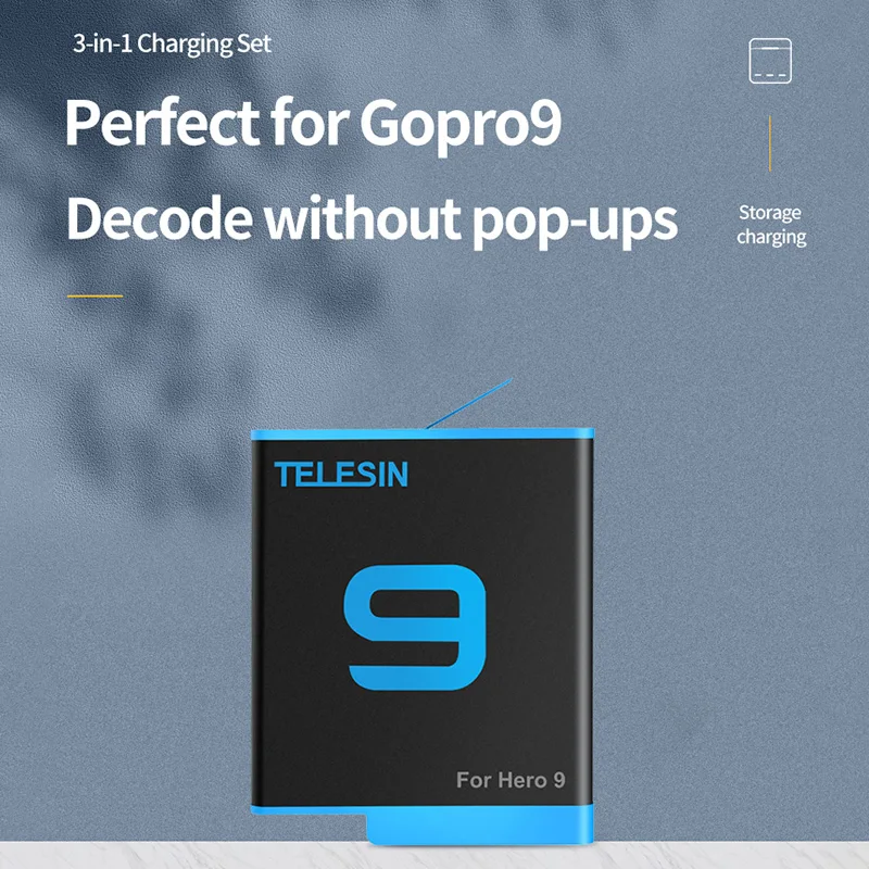 Battery Charger for GoproTELESIN Battery 1750 mAh for GoPro Hero 9