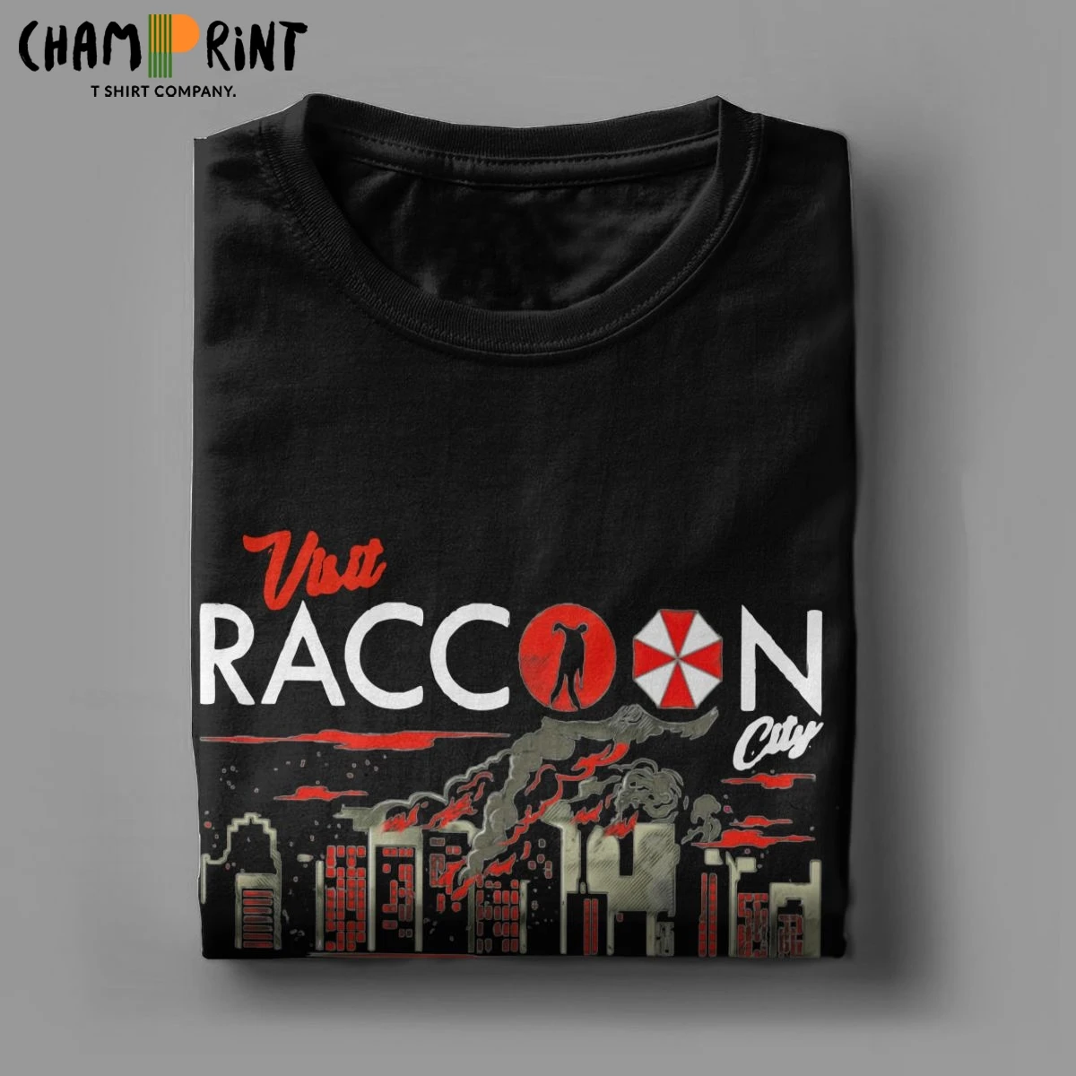 Для Мужчин's футболки посетить енота город забавные хлопковые футболки короткий рукав зонтик футболка с круглым вырезом топы уникальный